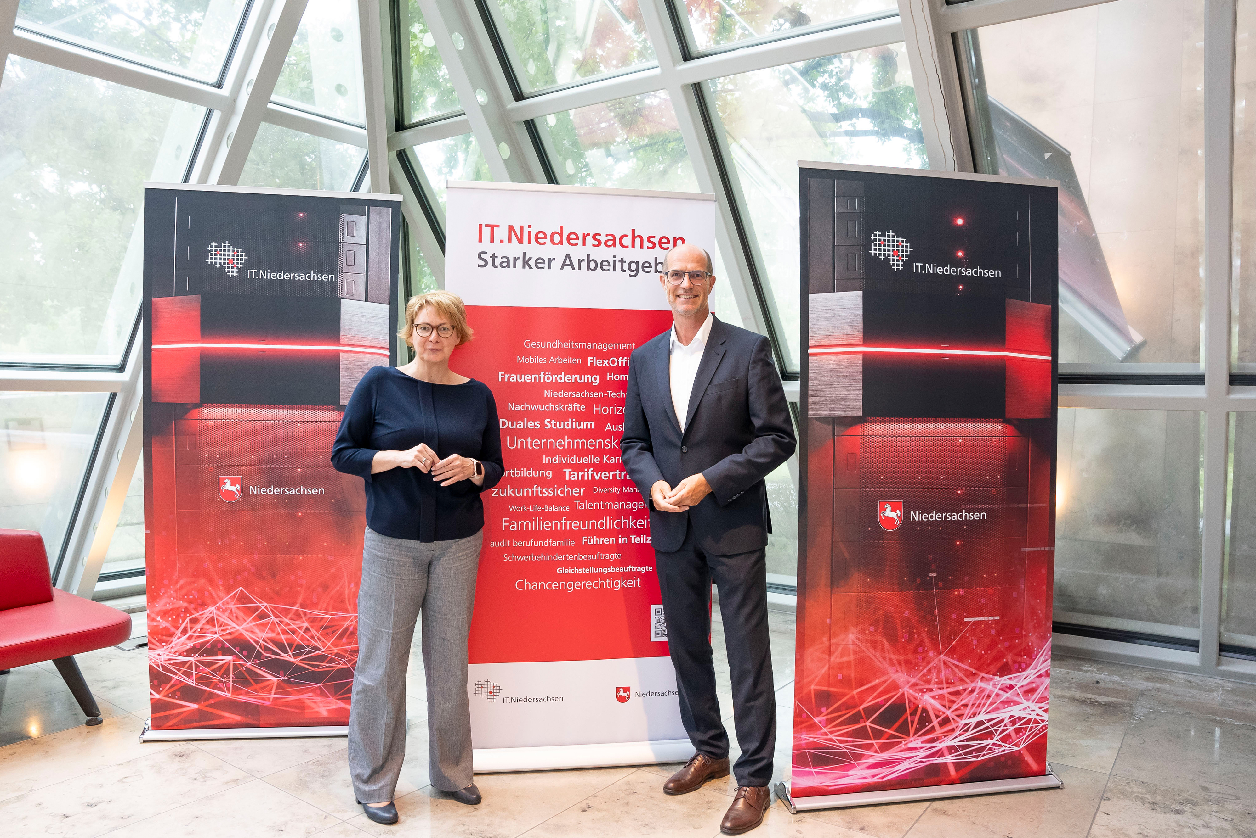 Die Niedersächsische Ministerin für Inneres und Sport, Daniela Behrens, hat am Dienstag, 23. Juli, IT.Niedersachsen im Rahmen ihrer diesjährigen Sommerreise besucht. Die Ministerin machte sich dabei ein Bild vom Landesbetrieb und seinen vielfältigen Aufgaben. Empfangen wurde sie von IT.N-Geschäftsführer Axel Beims sowie Kolleginnen und Kollegen aus verschiedenen Fachgebieten und Gremien.