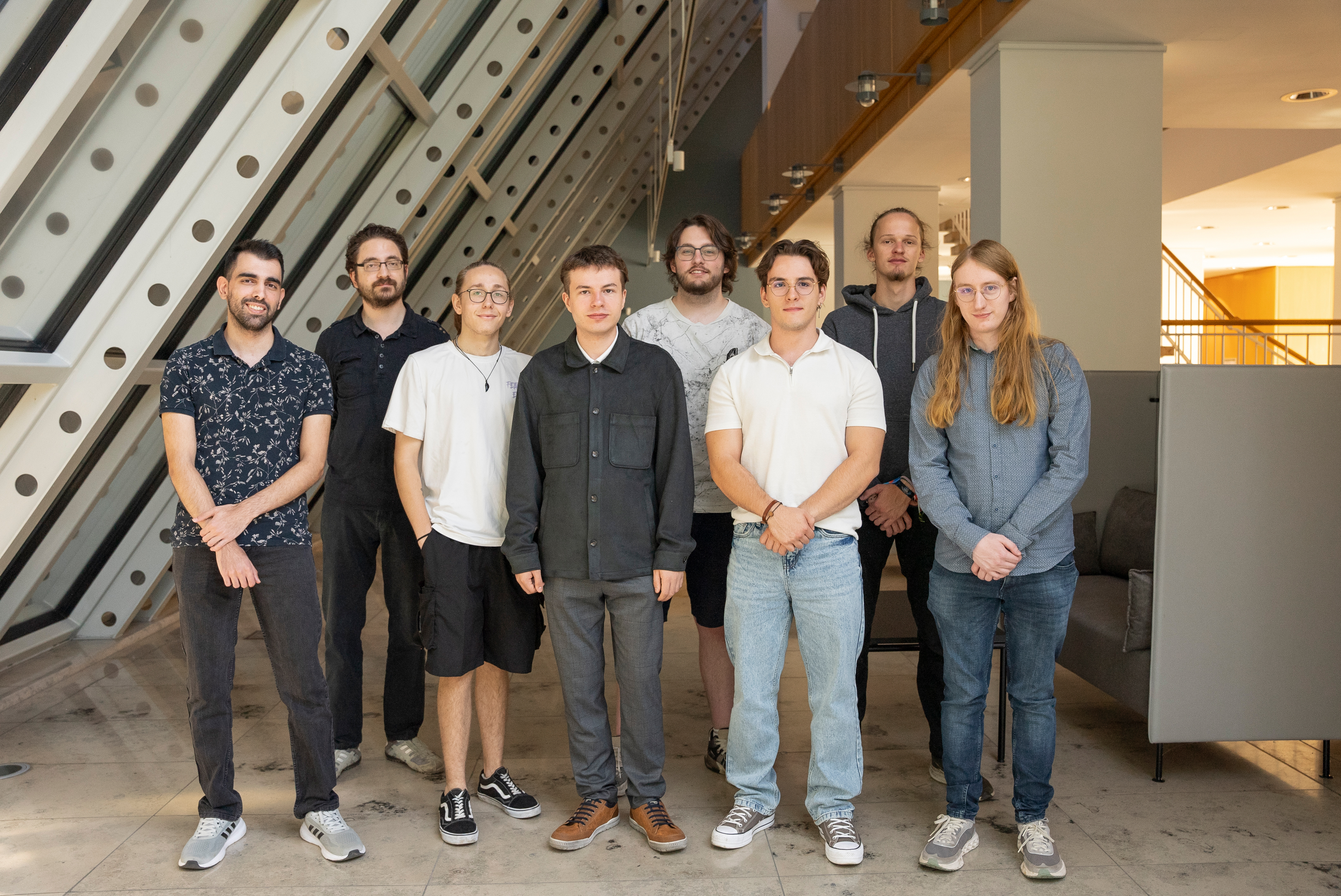 Von links nach rechts: Julien Pavel (Azubi), Kevin Remmele (Azubi), Maximilian Freund (Stipendiat), Joel Maurice Werner (Azubi), Remus Antonius Krüger (Stipendiat), Murat Tulum (Stipendiat), Lucas Müller (Stipendiat) und Michael Grosenick (Azubi).