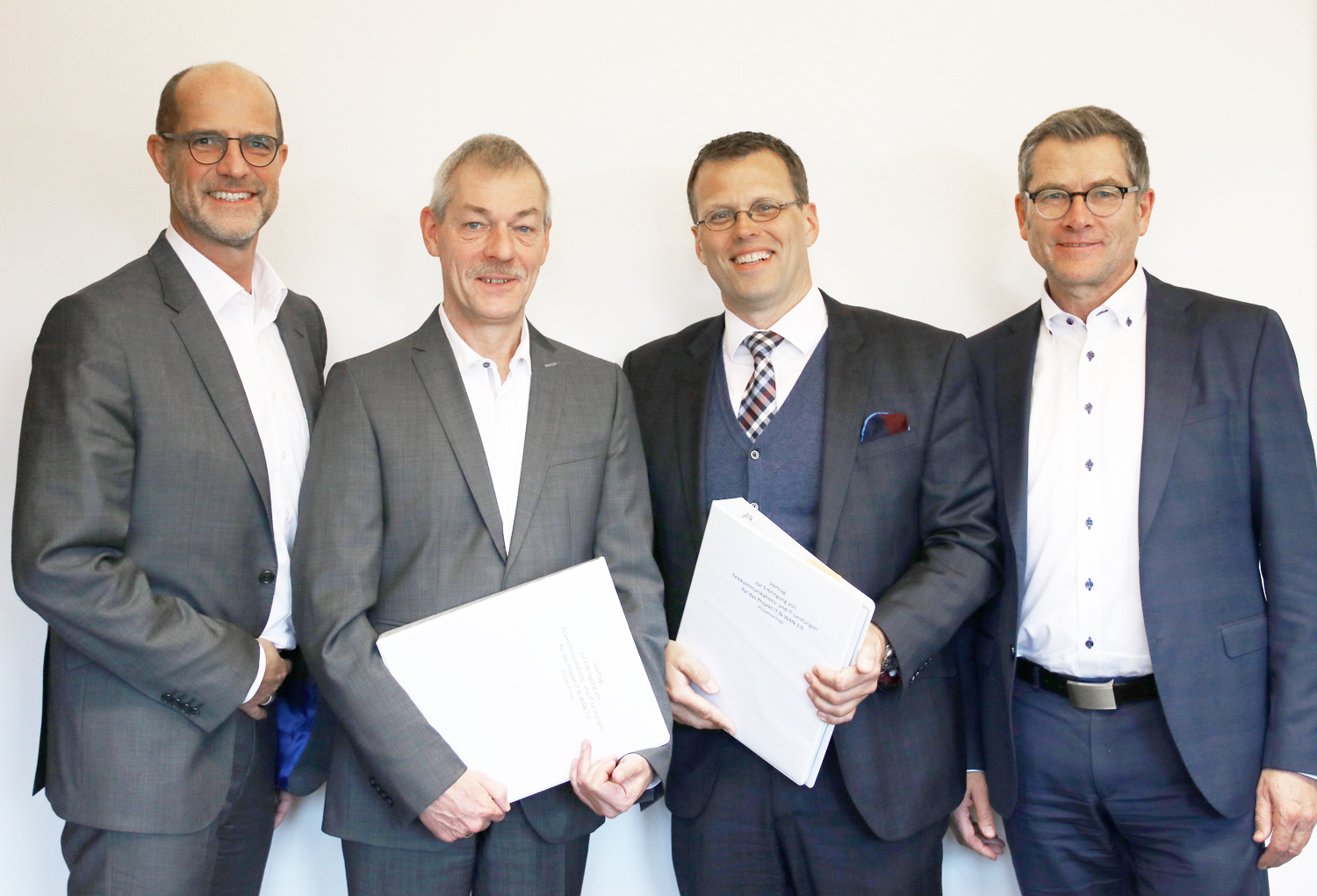 V.l.nr.: IT.Niedersachsen-Geschäftsführer Axel Beims, Stellvertretender IT.Niedersachsen-Geschäftsführer Michael Breest, EWE TEL-Key Accountmanager Andreas von Bargen und EWE TEL-Geschäftsführer Ludwig Kohnen haben den Vertrag unterzeichnet.
