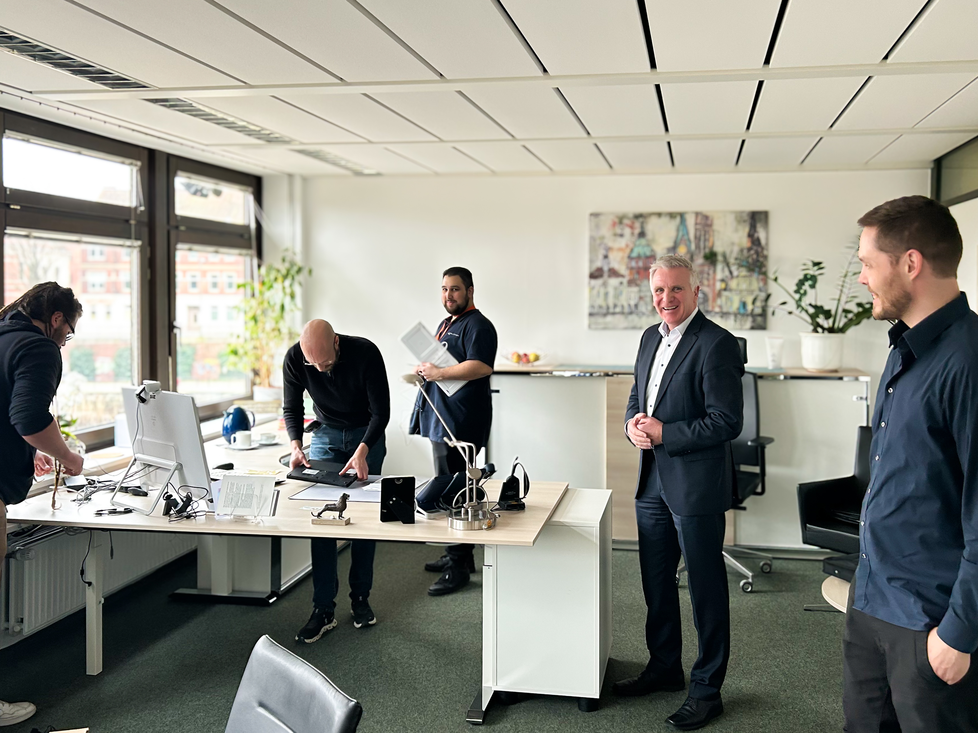 Der Rollout in Lüneburg. Von li. nach re. Nicolas Piette (Weiss IT Solutions GmbH), Tim Hube (IT.Niedersachsen), Karim Sattar (Weiss IT Solutions GmbH), Thomas Ring (Polizeipräsident der PD Lüneburg), Alexander Winheim (Gesamt-IT-Koordinator, PD Lüne