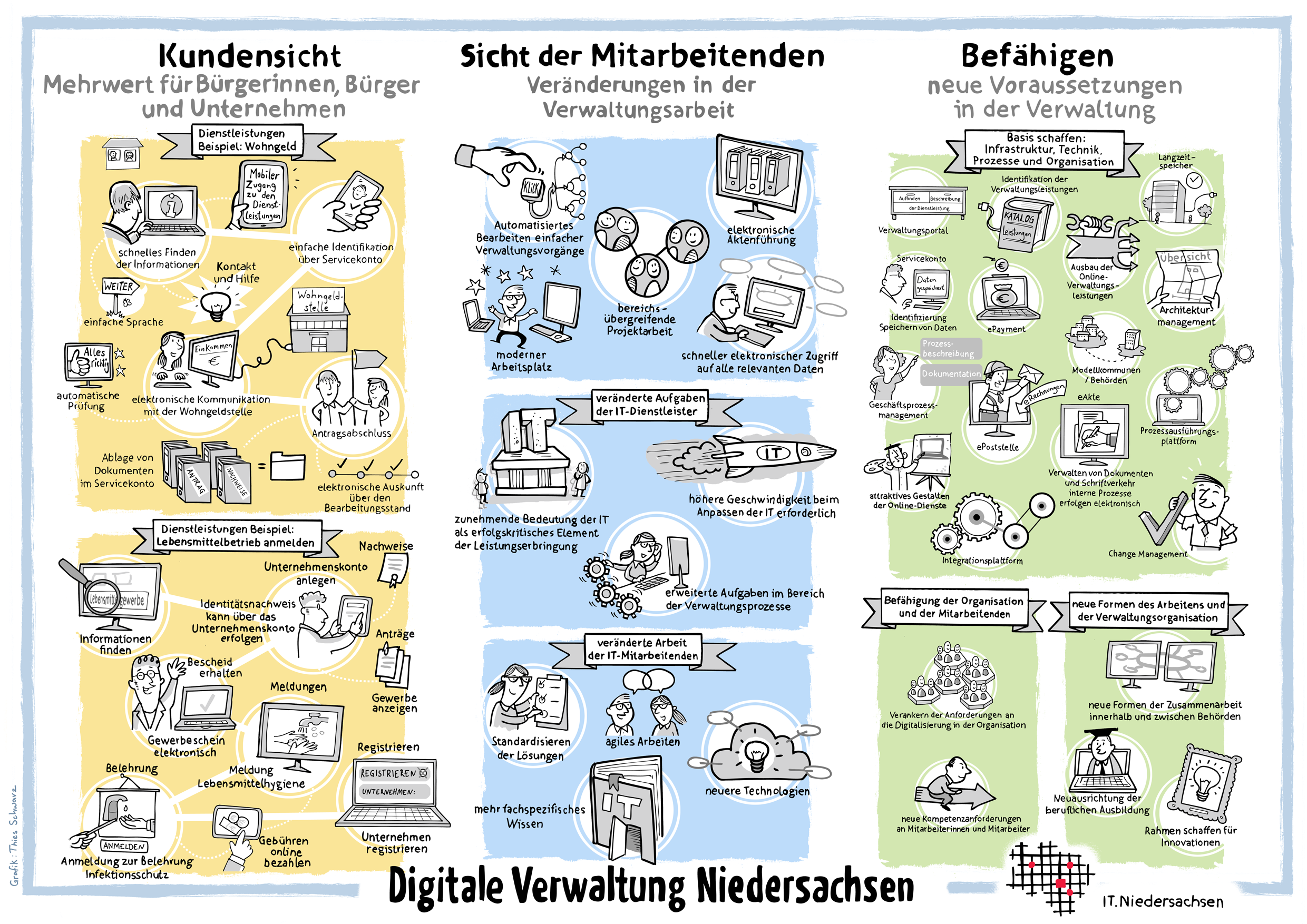 Das Land Niedersachsen digitalisiert seine Verwaltung. Bürgerinnen, Bürger und Unternehmen sollen Leistungen auch online abrufen können, statt sich zur Behörde bewegen zu müssen. Darunter fällt etwa das Anmelden eines Gewerbes oder das Beantragen von Wohngeld oder einem Schwerbehindertenausweis.