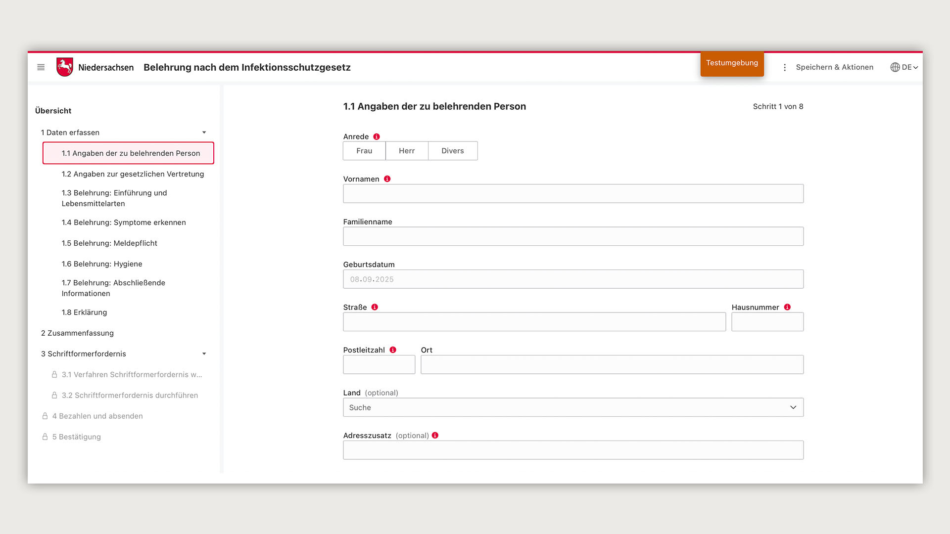 EfA-Onlinedienst Infektionsschutzbelehrung IFSB-Online